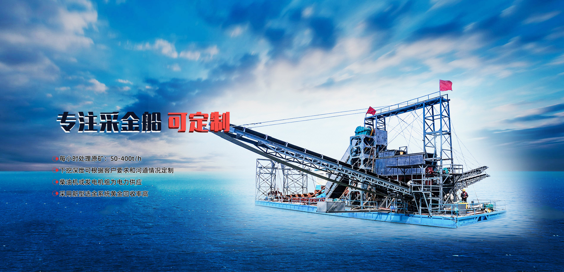主打產(chǎn)品 根據(jù)礦料定制:選礦設(shè)備 沙金礦開采設(shè)備 尾礦回收設(shè)備 采金船 離心機等產(chǎn)品